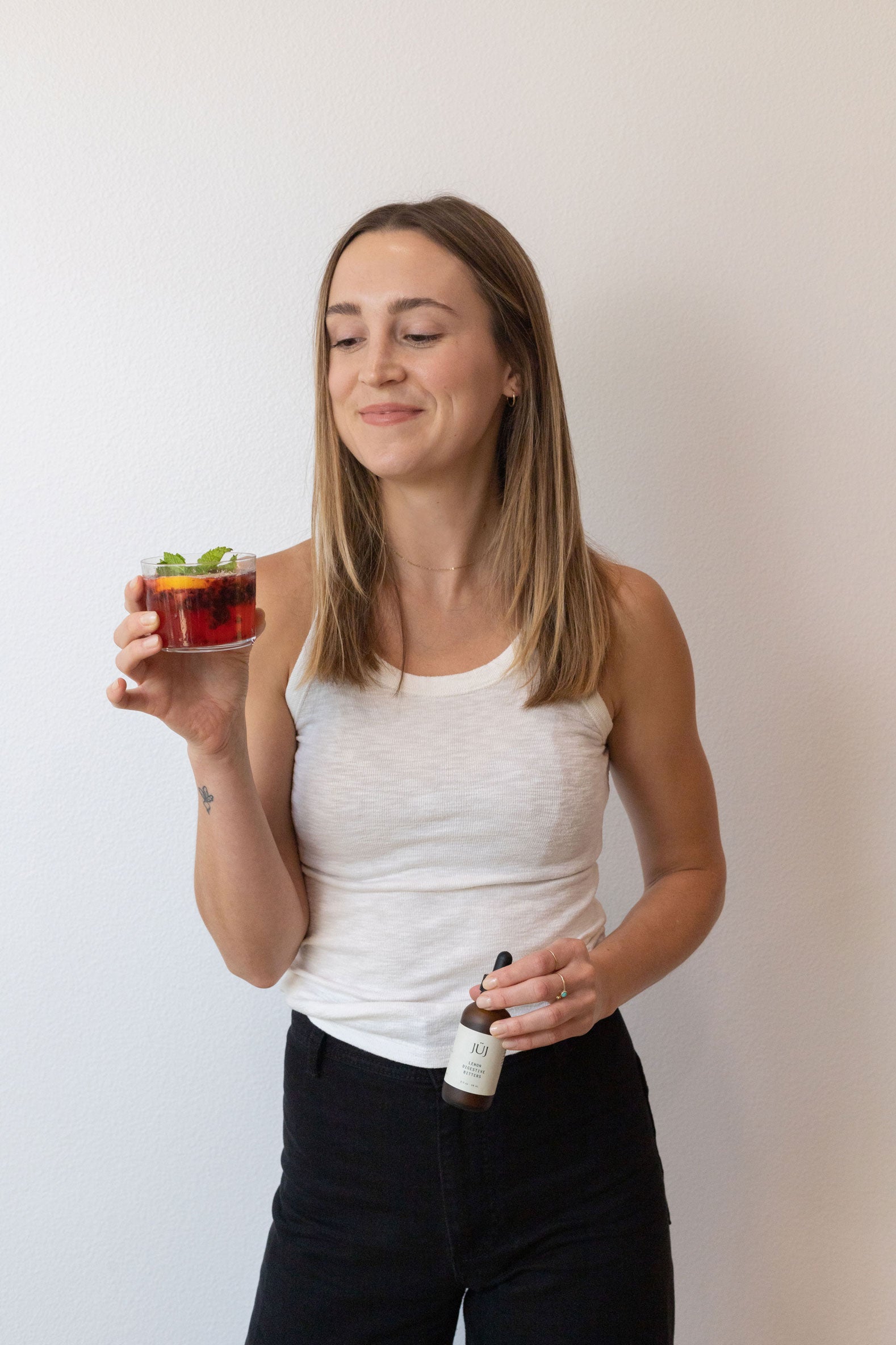 While JÜJ can be enjoyed within a mocktail or cocktail, you can also enjoy it directly on the tongue as a digestive aid before meals—we love the Lemon Bitters this way.